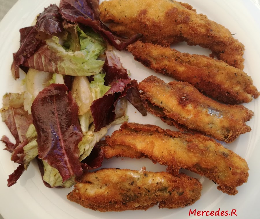 Elaboración:Limpiar. Los boquerones, retirando la espina central sin separar los lomos, lavar bien y secar con papel absorbente, abriéndolos. Salar ligeramente y reservar.