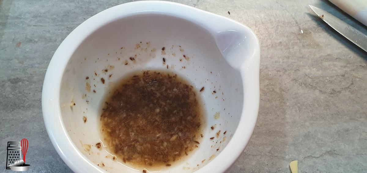 Cuando esté majado, añadimos al mortero el vinagre y mezclamos todo.