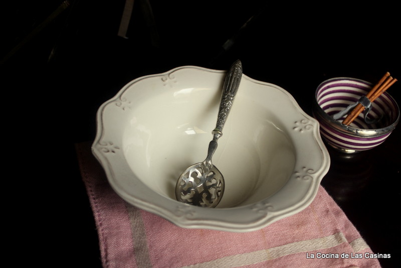Preparas un almíbar con el agua, el azúcar, el vino y la canela.