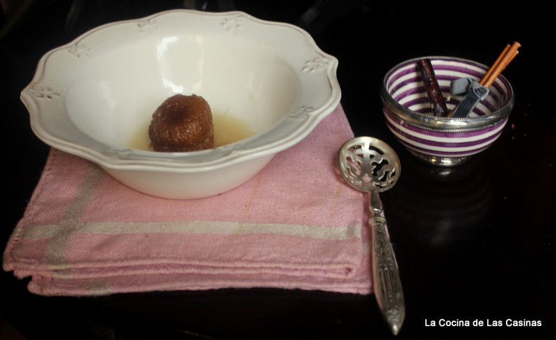 Incorporas al almíbar y cueces durante 15 minutos, si es necesario y depende de como te gusten, añades un poco más de agua y azúcar.