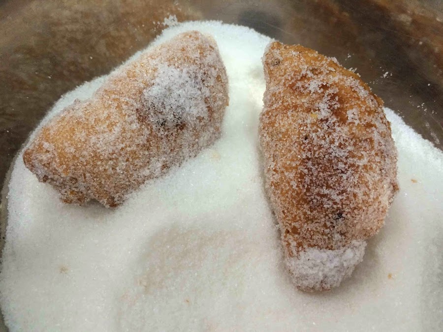 Estando aún bien calientes los emborrizamos en azúcar y los vamos colocando en un plato.