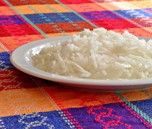 Con un poco de aceite, pochamos la cebolla, junto con 2 o 3 dientes de ajo laminados.