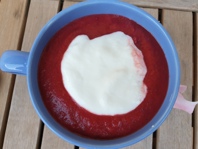 - Haz la crema agria mezclando el yogur con el chorrito de limón y mezcla.