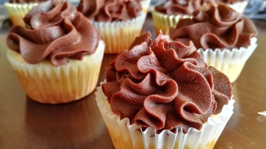 Ahora si, a lo que vamos verdad... Hoy les traigo unos cupcakes que son una exquisitez, la combinación de cada parte es sencillamente deliciosa, en casa han volado de un solo y no es para menos, el ganache, la crema y el bizcocho son lo máximo! Requieren un poco de paciencia, no voy a mentir, y no es que sean complicados, para nada! al contrario son muy facilitos de preparar pero se necesita esperar a que enfríen los cupcakes, que eso es relativamente rápido y tenemos que esperar también a que enfríe tanto la crema como el ganache y eso si requiere de unas cuantas horas, pero la verdad... vale la espera.