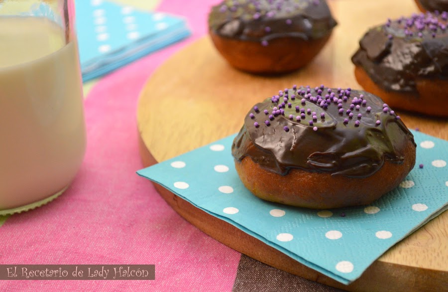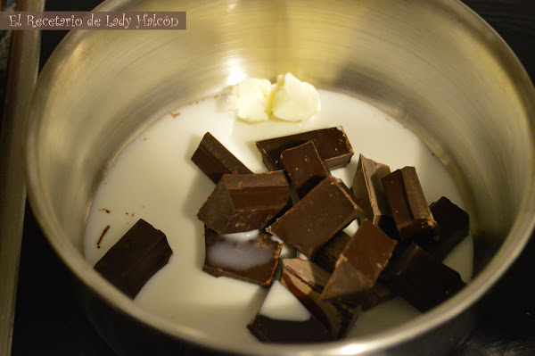 Ya solo queda derretir el chocolate junto con la mantequilla y un poco de leche. La cantidad de leche dependerá de la textura del chocolate, yo lo voy ajustando hasta conseguir la consistencia que más me gusta para cubrir los donuts.