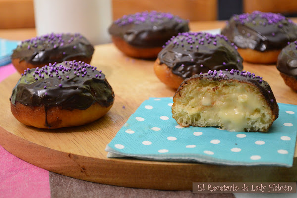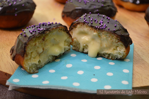 Dudé entre algunos bizcochos y tartas pero en cuanto vi estos Boston Cream Donuts no me pude resistir. Además, en casa llevábamos mucho tiempo queriendo preparar donuts, así que me he quitado una gran espinita que tenía clavada. ¡Y menudo descubrimiento! Nunca pensé encontrar una receta tan rica y que se pareciera tanto a los originales... Ya estoy pensando en nuevos rellenos y combinaciones jeje.