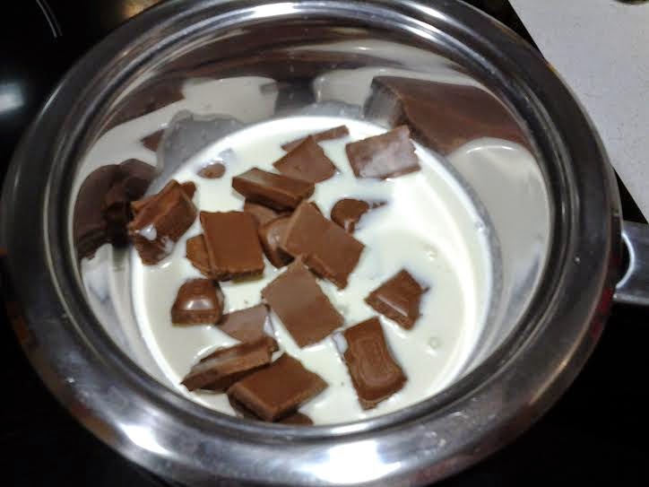 Chocolate blancoPara empezar deberéis tener preparado con anterioridad los eclairs y la crema pastelera. Una vez tengáis listo eso, la receta es muy sencilla. Ponemos la nata (crema de leche) en un cazo y cuando este caliente echamos el chocolate y lo derretimos.