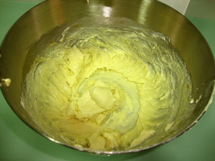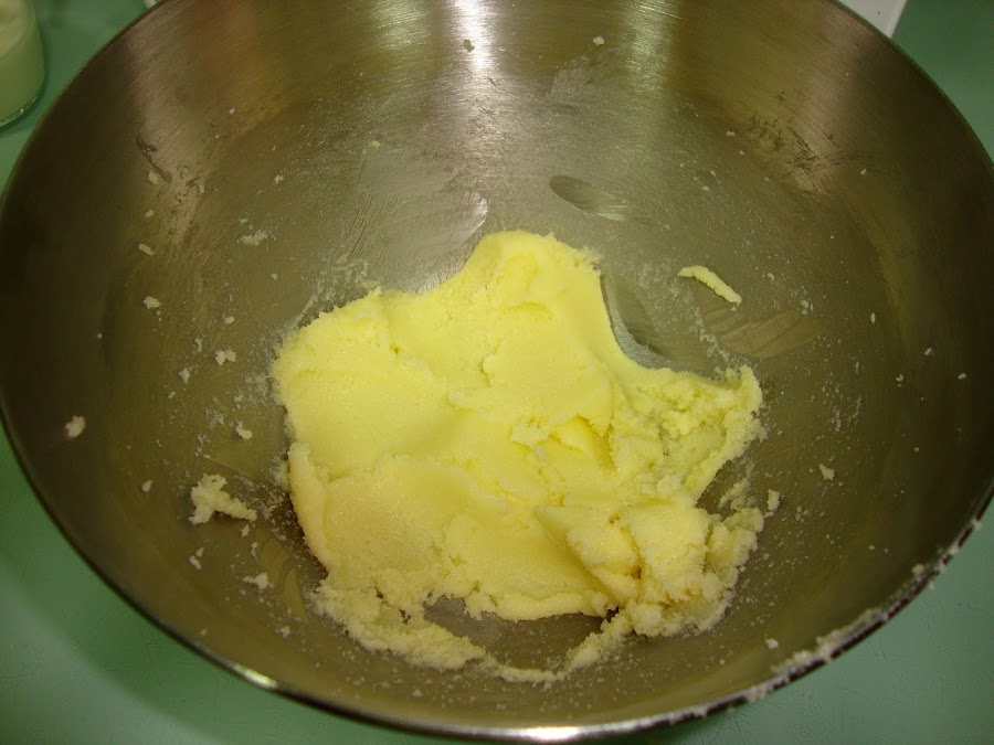 En un cuenco se pone el azúcar y la mantequilla y se bate hasta que esté todo el azúcar integrado, luego se añade el huevo y la vainilla y se sigue batiendo.
