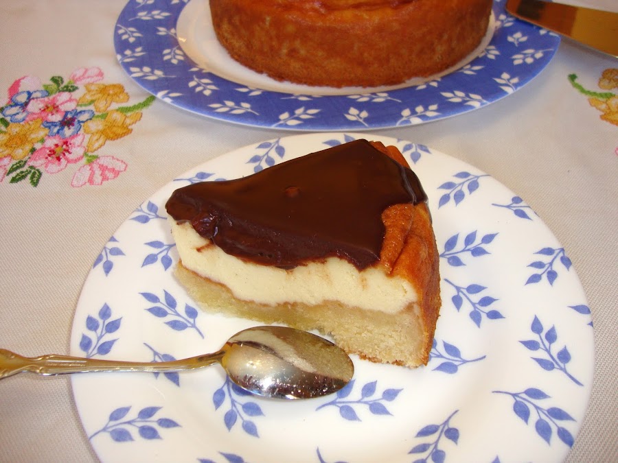 La receta original de Boston tiene cuatro capas, de abajo a arriba, seria bizcocho, tarta de queso, crema pastelera y ganache de chocolate, pero yo he decidido no hacer la crema pastelera porque a mis hijos no les gusta mucho (sniff,sniff).