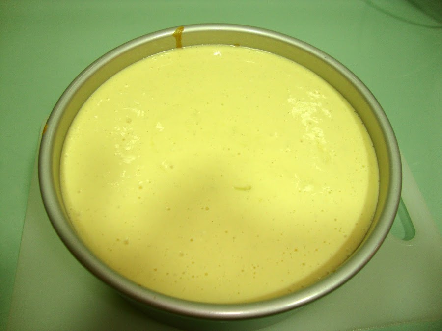 Se añade la mezcla al bizcocho anterior (ya horneado) y se mete en el horno a 180ºC durante 40 minutos, luego se apaga el horno y se deja el bizcocho otros 15 minutos mas y posteriormente se abre la puerta del horno y se deja otros 5 minutos, esto es para que no se rompa la tarta de queso por la diferencia de temperatura.