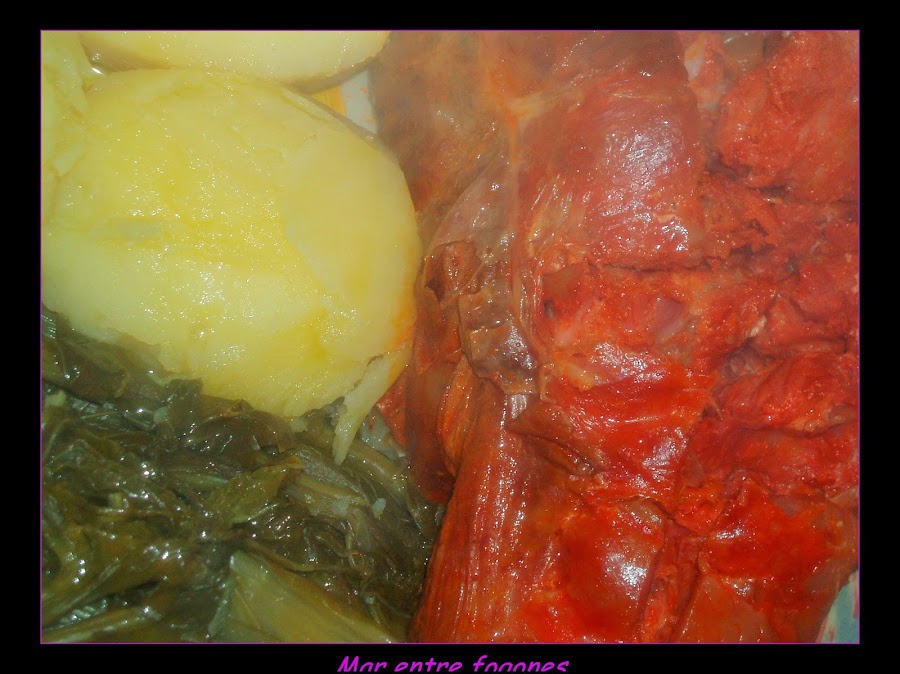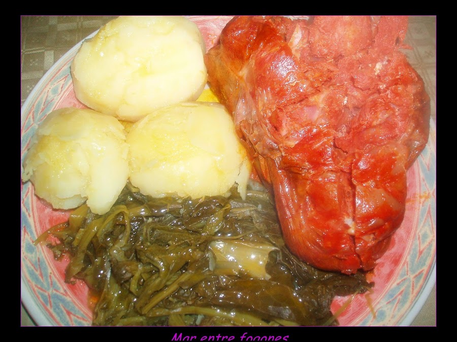 Pelamos las patatas y las cocemos cuando están casi cocidas añadimos las navizas y dejamos que terminen las patatas de cocerse.