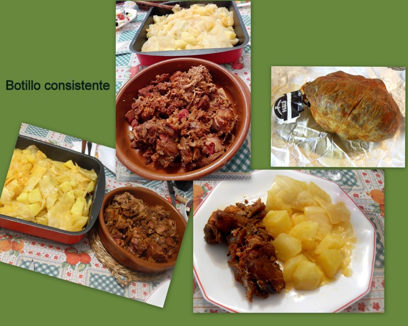 Servir el botillo y las verduras seguidamente, acompañado de pan y un buen vino tinto para digerirlo.