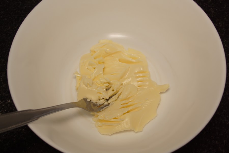 Sacamos la mantequilla del frigorífico por lo menos una hora antes. Yo la saqué de víspera.