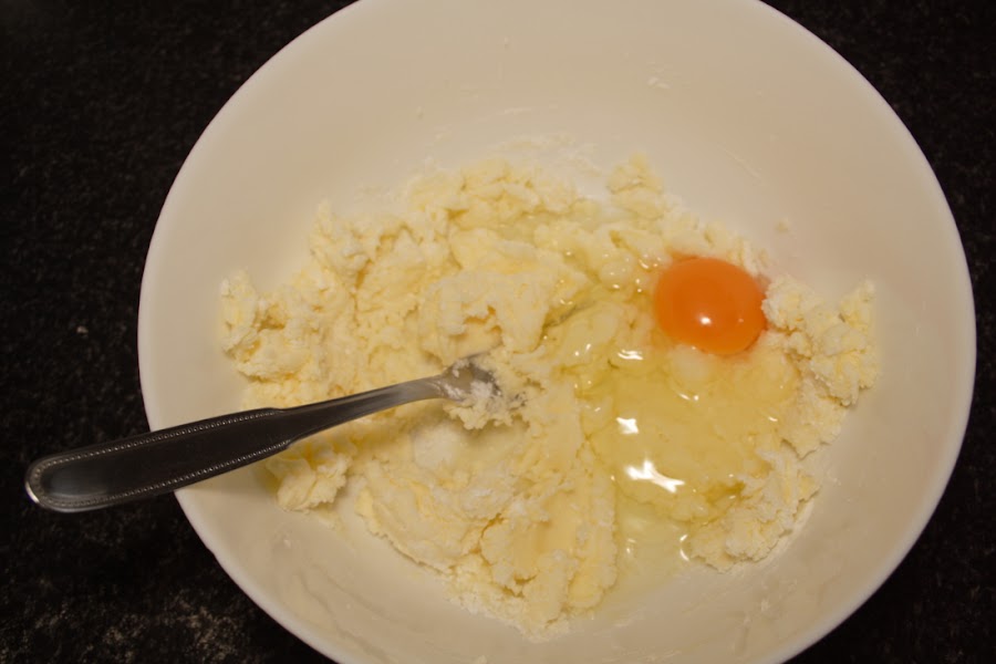 En un bol ponemos la mantequilla a punto de pomada y el azúcar. Y con ayuda de una varilla o un tenedor, vamos mezclando bien.
