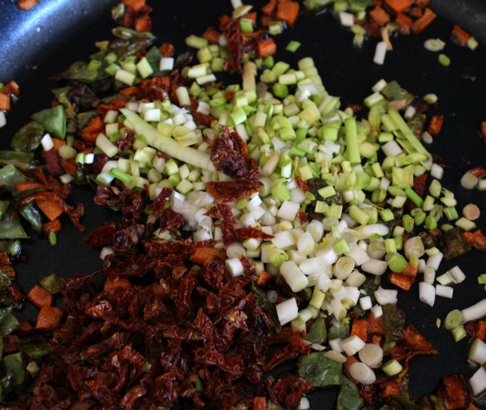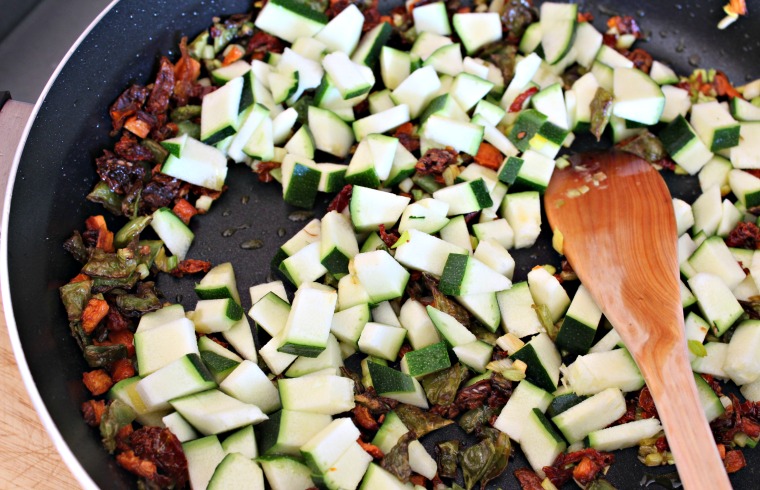 Ahora le toca el turno a los tomates secos y al calabacín.