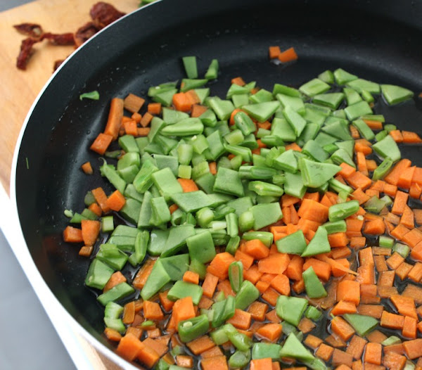 Salteamos las verduras en un poco de aceite.