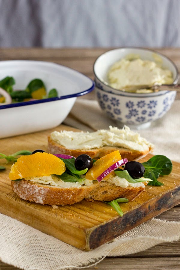 Aunque al parecer el origen de la brandada es catalán, me he dejado llevar por mi tradición andaluza y la he acompañado con una ensalada de naranja, me encanta esa combinación fresca y dulzona, que marida a la perfección con el bacalao, realzando su sabor, os animo a probarla.