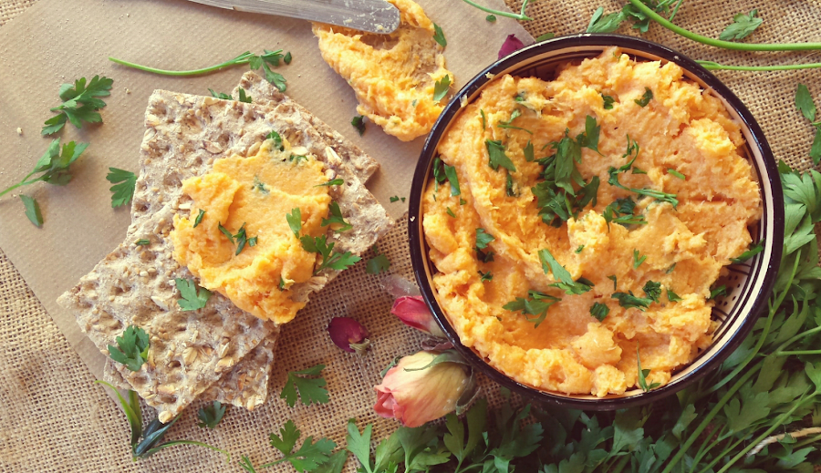 Se parece mucho a la receta tradicional, lo único es que sustituyo el aceite por calabaza cocida y un poco de yogur, no le añado ni patata ni nata (crema de leche) ni ningún otro ingrediente, y queda realmente rica, rica. Yo la como con tostadas tipo crackers con semillas como aparece en la foto, para desayunar o a media mañana, aunque la puedes tomar de plato principal gratinada o incluso usarla para rellenar unos pimientos del piquillo o cualquier otro de los usos que normalmente le des a la brandada de bacalao. ¿Te animas a probarla?