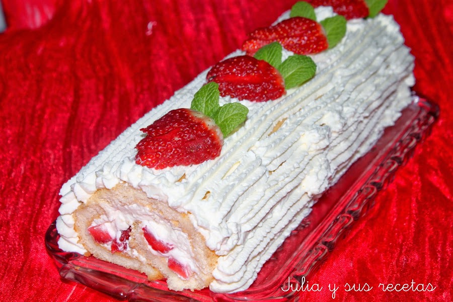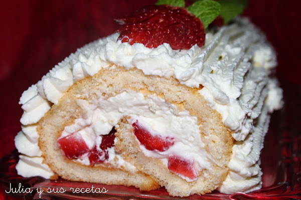 La receta de hoy es un rico brazo se gitano relleno de fresas y nata (crema de leche). Aunque parezca un poco larga, es muy fácil y si dejas el bizcocho hecho el día de antes, solo tendrás que rellenarlo. Si te gustan las fresas y la nata (crema de leche), este es tu postre. Ademas hay que aprovechar que estamos en plena temporada de fresas y consumirlas de todas las formas posibles.