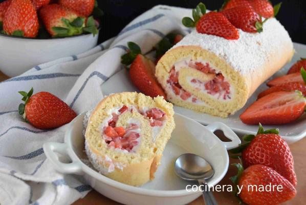 Dificultad: muy fácil Raciones: 8 – 12 porciones Tiempo: 30 minutosIngredientes para este brazo de fresas y queso crema muy fácil: