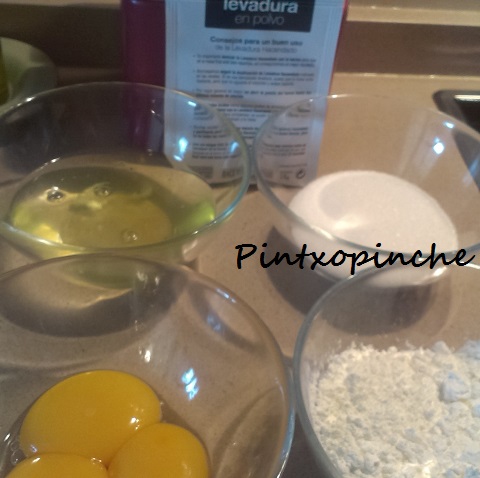 Pesamos los ingredientes y separamos las claras de los huevos.