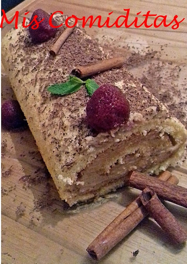 Ya veréis lo fácil que es y queda muy esponjosa y suave, en la receta original de Recetas de rechupete, lo decoraba con chocolate en polvo sin azúcar y unas ramas de canela. Yo opté por rallarle un poco de chocolate negro y añadirle unos frutos rojos que tenía de lata.