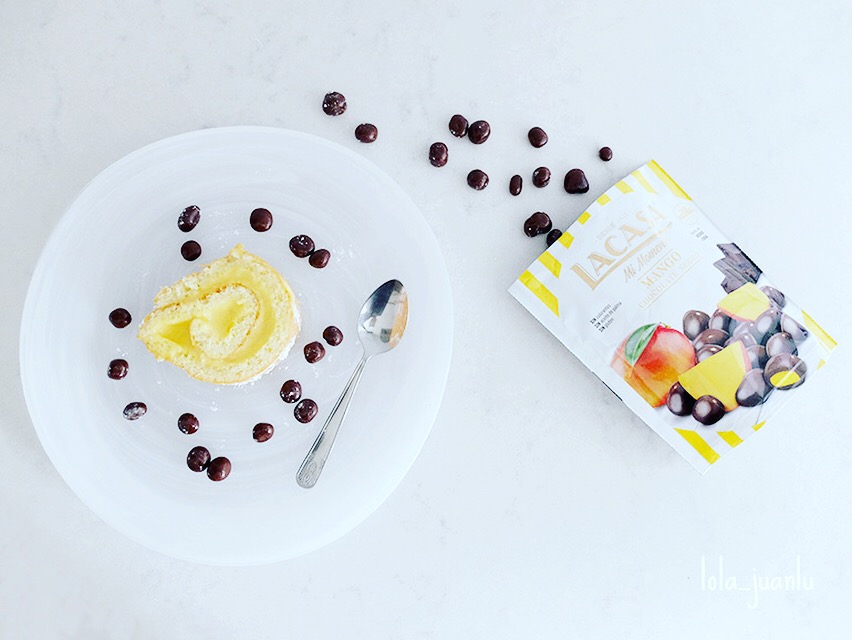 Decoramos con unas deliciosas grageas de mango natural cubiertas de chocolate intenso de Lacasa, que vienen en la última caja Degustabox.