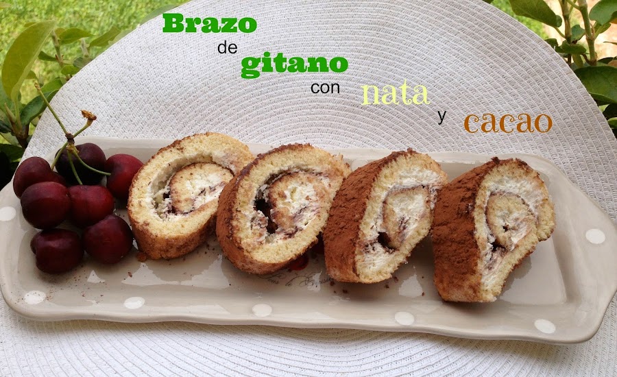 Desenrollamos el brazo y lo espolvoreamos con cacao.