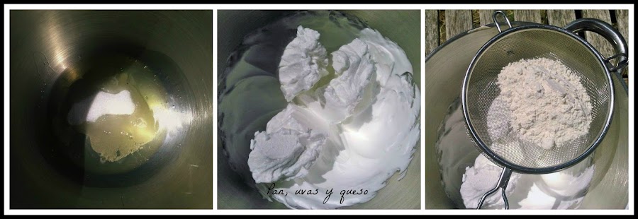 En un bol batimos las claras del huevo con el azúcar hasta que alcancen el punto de nieve.