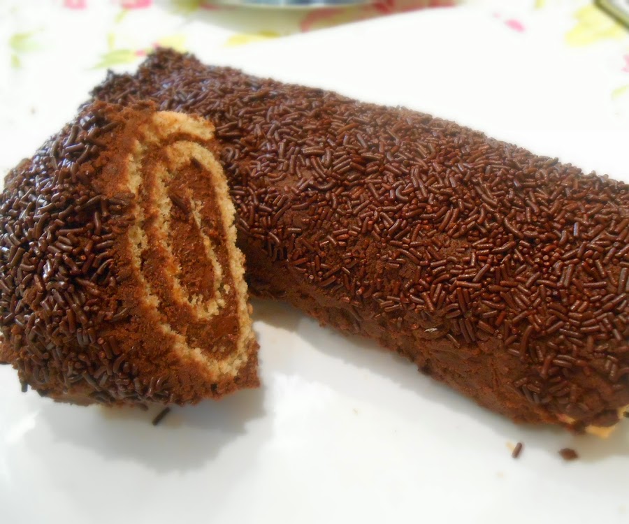 Reservamos un poco de la trufa para el exterior, con el resto, rellenamos nuestro brazo y lo enrollamos.