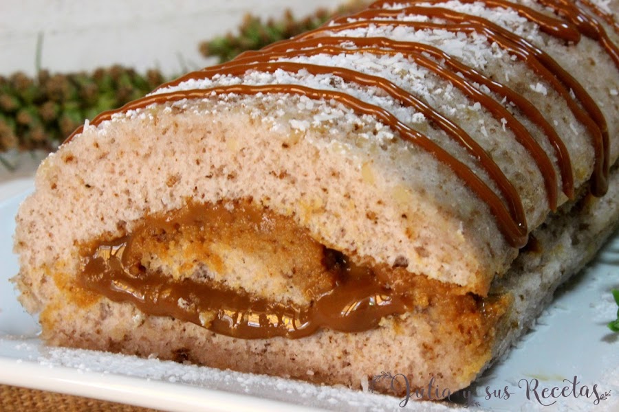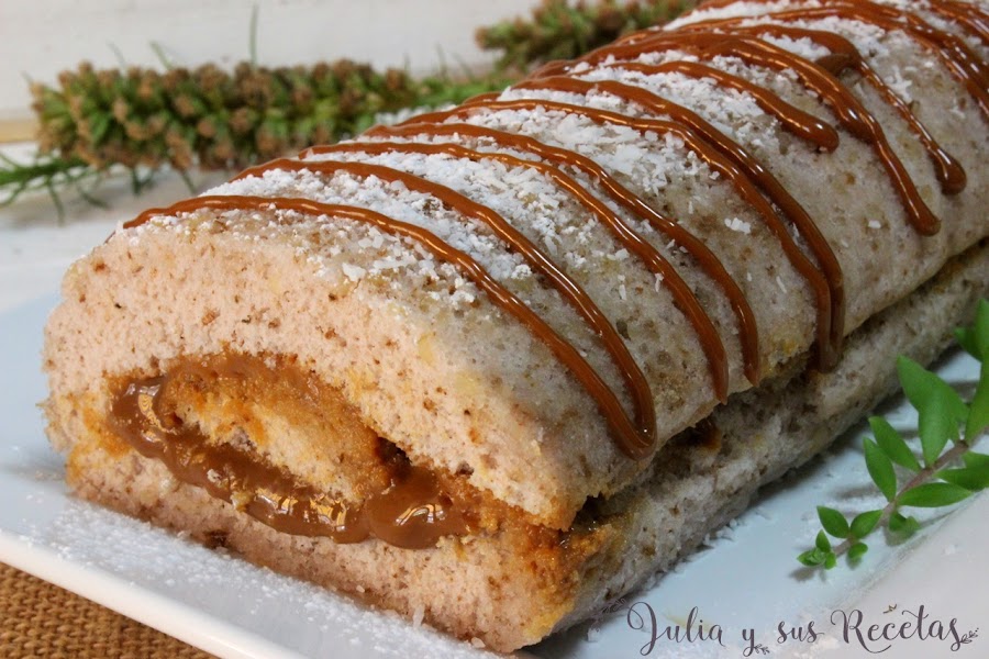 Un brazo de gitano relleno de dulce de leche y sin gluten, aunque para los que no son intolerantes solo tenéis que sustituir la harina sin gluten por otra normal de repostería.