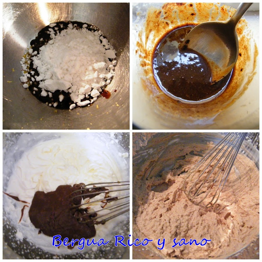 6. Entonces montamos la nata (crema de leche) y una vez lista, le incorporamos con cuidado y poco a poco la mezcla de café hasta que cambie toda a color moka.