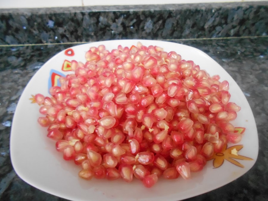 La granada que ahora está en plena temporada es una fruta llena de propiedades antioxidantes, vitaminas y minerales. y esta variedad, la Granada Mollar de Elche D.O.P es por sus características la ideal para esta receta.