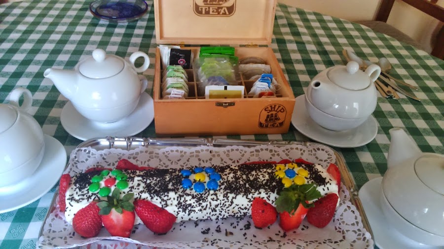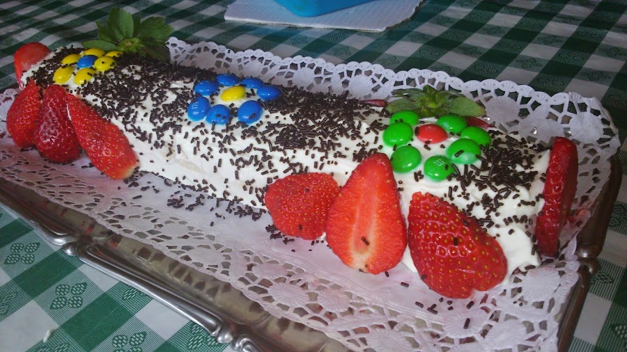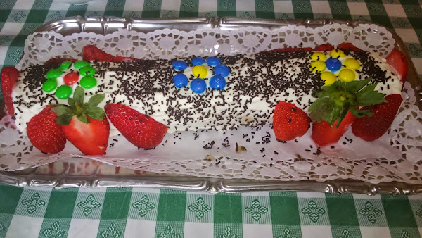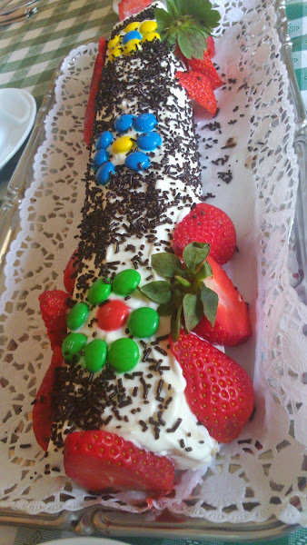 se vuelve a enrollar, lo colocamos sobre la bandeja que lo tengamos que servir (para que no se os ensucie demasiado la blonda os recomiendo poner sobre ella una servilleta por ambos lados hasta que terminemos la decoración.