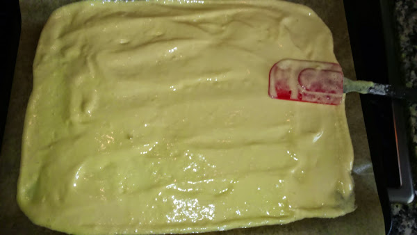 se va mezclando con cuidado. haciéndolo con movimientos envolventes para que las claras no se bajen demasiado. se pone sobre papel de parafina
