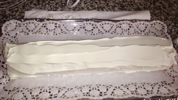 Con la nata (crema de leche) que teníamos reservada lo cubrimos todo