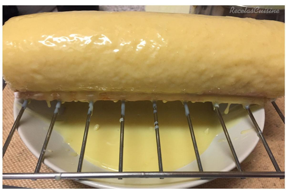 5. Colocamos nuestro brazo de gitano sobre una rejilla y ponemos debajo una bandeja o plato para recoger el chocolate que caiga al bañarlo.