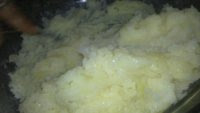 Haz un pure de patatas con las patatas aun calientes y el queso, echale la cantidad que quieras. Rectifica de sal y pimienta.