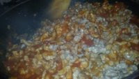 Una vez hecha la cebolla, añade la carne. Cuando la carne este casi hecha, añade el vino y deja que reduzca, añade el tomate frito. Marealo todo bien y aparta del fuego.