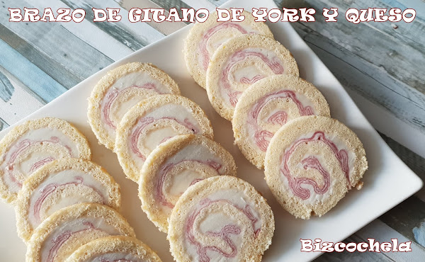 Pues seguimos con ideas para las próximas fechas, y hoy os traigo este BRAZO DE GITANO DE YORK Y QUESO, un aperitivo delicioso que os aseguro que es triunfo asegurado.