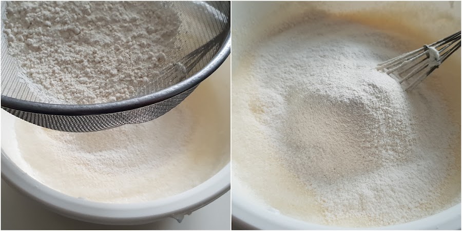 4. - Añadimos la harina tamizada (pasada por un colador) y volvemos a mezclar con cuidado.