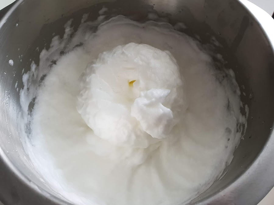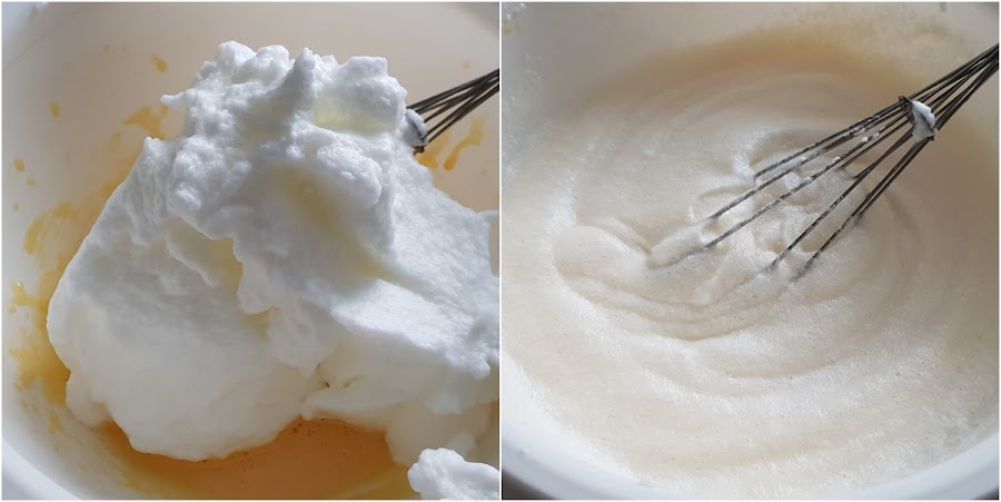 3. - Lo añadimos a la mezcla de las yemas y mezclamos bien.