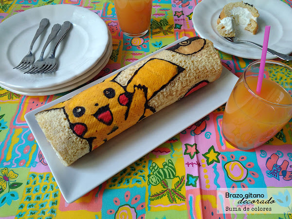 La receta de esta ocasión es repetida, es decir, ya tengo una receta básica de brazo de gitano en el blog, pero tenía muchas ganas de experimentar con el tema de la decoración y de ahí lo del brazo de gitano pikachu. Además, como hace poco fue la comunión de mi prima pequeña y ella es una fan absoluta de los pokemon, tuve la excusa perfecta para probar esta técnica.