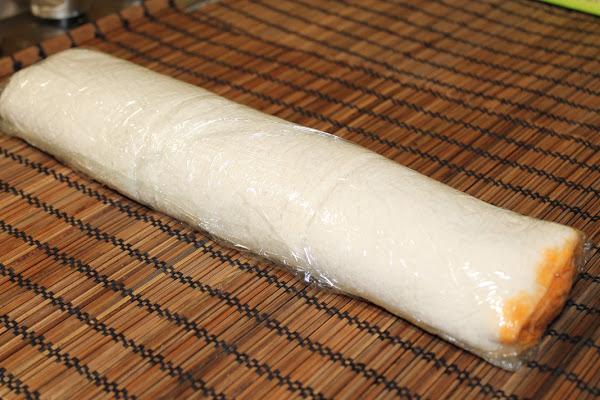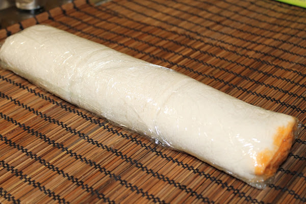 Envolvemos con la ayuda del papel film y reservamos en la nevera. Yo lo preparé el viernes por la noche y un par o tres horas antes de comerlo lo acabé de adornar