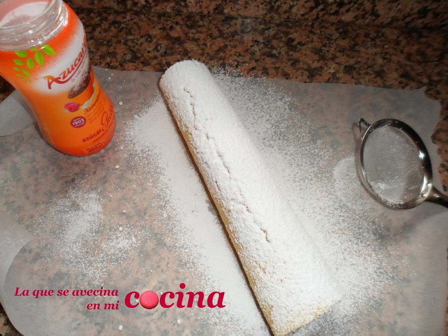 Para finalizar espolvorearemos azúcar glas sobre el brazo de gitano y decoramos al gusto.