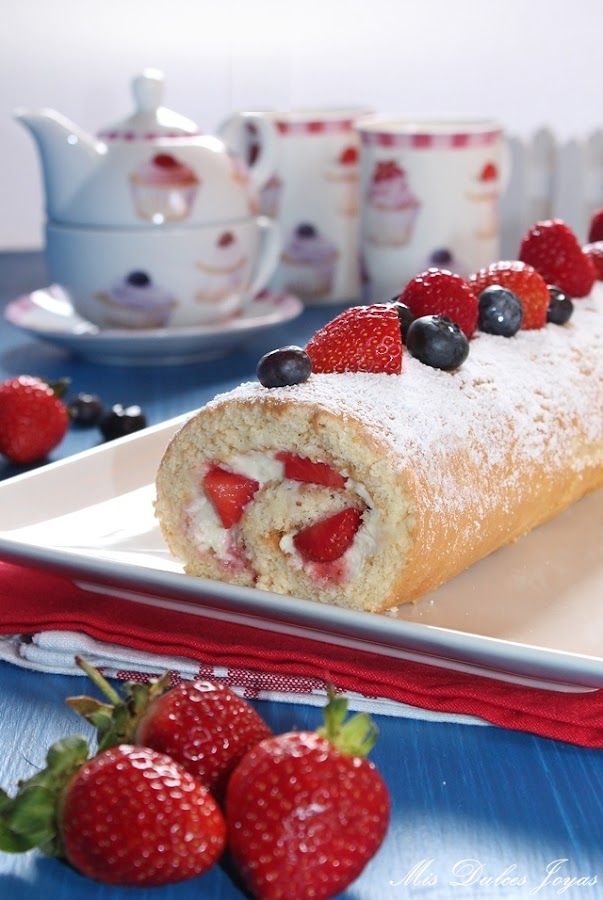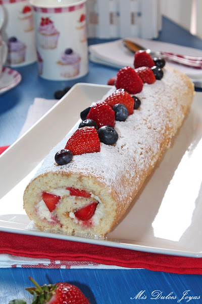 Un mes más participo en el reto Loc@s por Lorraine. El mes pasado me estrene con una receta salada de esta famosa cocinera, el Pan Damper australiano, y este mes no podía faltar a la cita tampoco. La receta elegida ha sido un brazo de gitano relleno de queso mascarpone y fresas, "Strawberry and mascarpone Swiss roll". Aunque me ha costado encontrar fresas porque ya en algunos sitios no l ...
