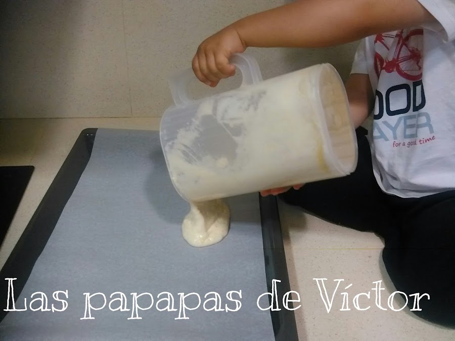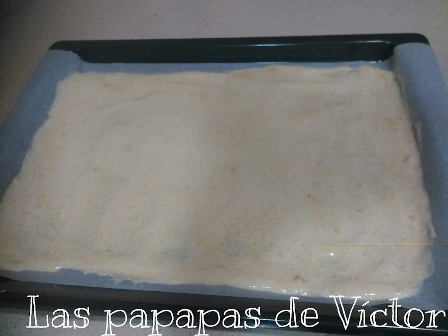 Poner la bandeja de horno un papel de horno o sulfurizado y verter la mezcla.