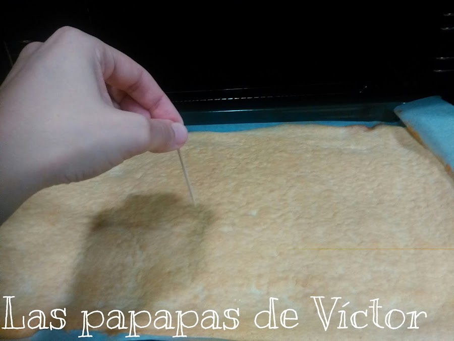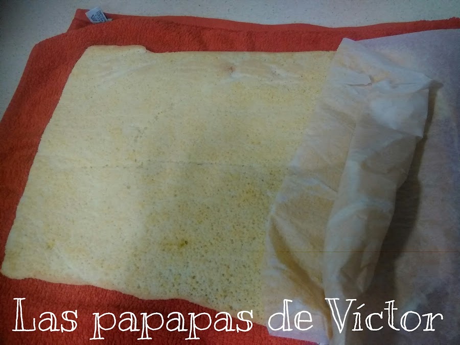 Sacarlo del horno y ponerlo con cuidado sobre un paño sacando con muchísimo cuidado del papel de horno.