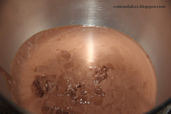 Comenzamos preparando la trufa que deberá reposar un mínimo de 12 horas al frio para luego poder montarla. Para ello colocamos en un cazo la nata (crema de leche) junto al azúcar. cuando rompa a hervir retiramos del fuego y añadimos el chocolate picado que deberemos disolver hasta formar una crema (fuera del fuego). Reservar en frio.