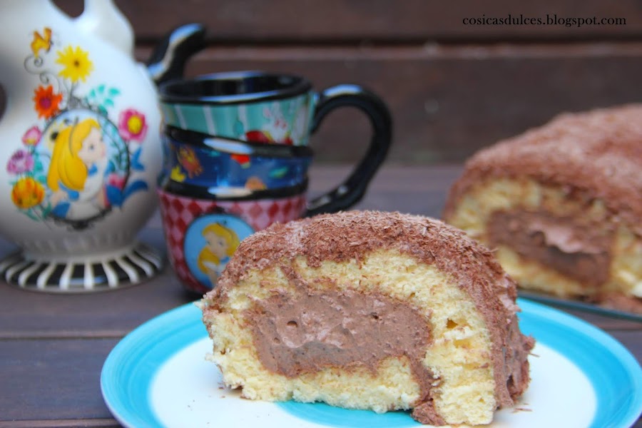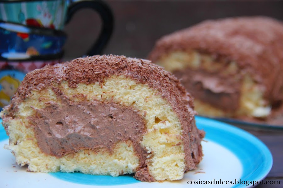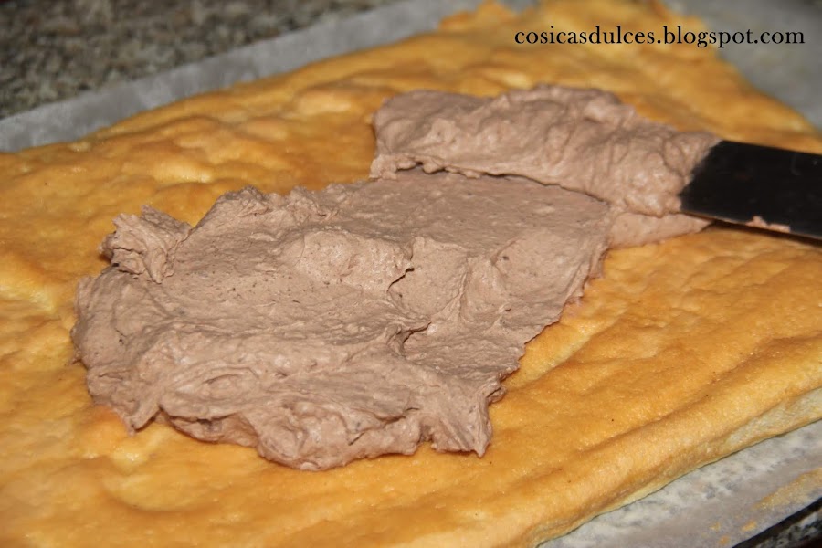 Montamos con un batidor de varillas nuestra trufa que ya estará bien fría y rellenamos con ella nuestro brazo de gitano.
